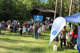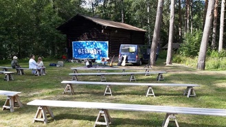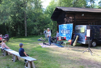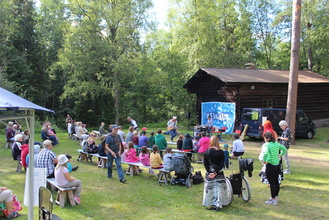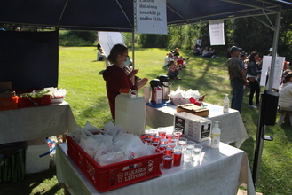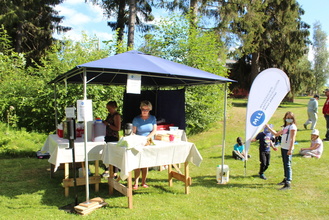 Paikalla MLL Kurun yhdistyksen kahvikoju. Lapsille ilmainen mehu ja munkki.