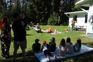 Leiri alkaa siis la 30.7 klo 10, aluksi saa rauhassa majoittua ja tutustua leirikeskuksen alueeseen. Leirillä jokainen perhe majoittuu omaan huoneeseen. Lounaan jälkeen on luvassa monenlaista puuhaa. Leirillä on mm. sään salliessa mahdollisuus kokeilla sup-lautoja . Olemme varanneet muutamat eri kokoiset pelastus/melontaliivit, mutta omatkin voi ottaa mukaan. Sunnuntaina klo 11 meille esiintyy PellePändi, jonka esitystä myös leirin ulkopuoliset ovat tervetulleita katsomaan.